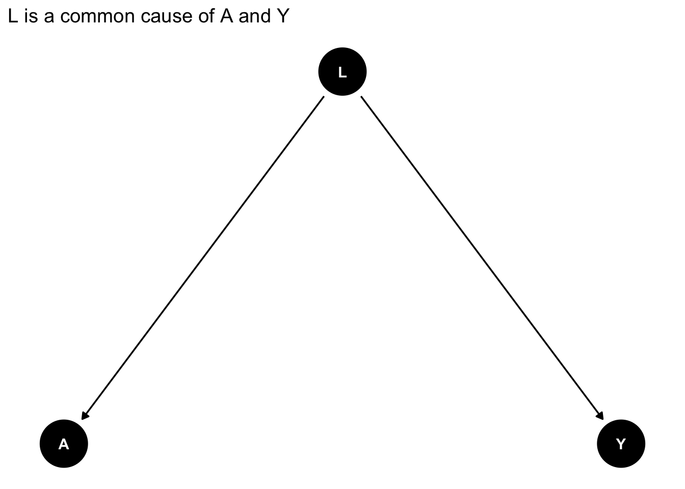 ggdag() + theme_dag_blank() + labs(title = "L is a common cause of A and Y")