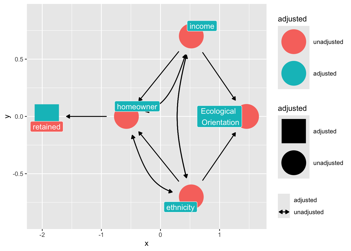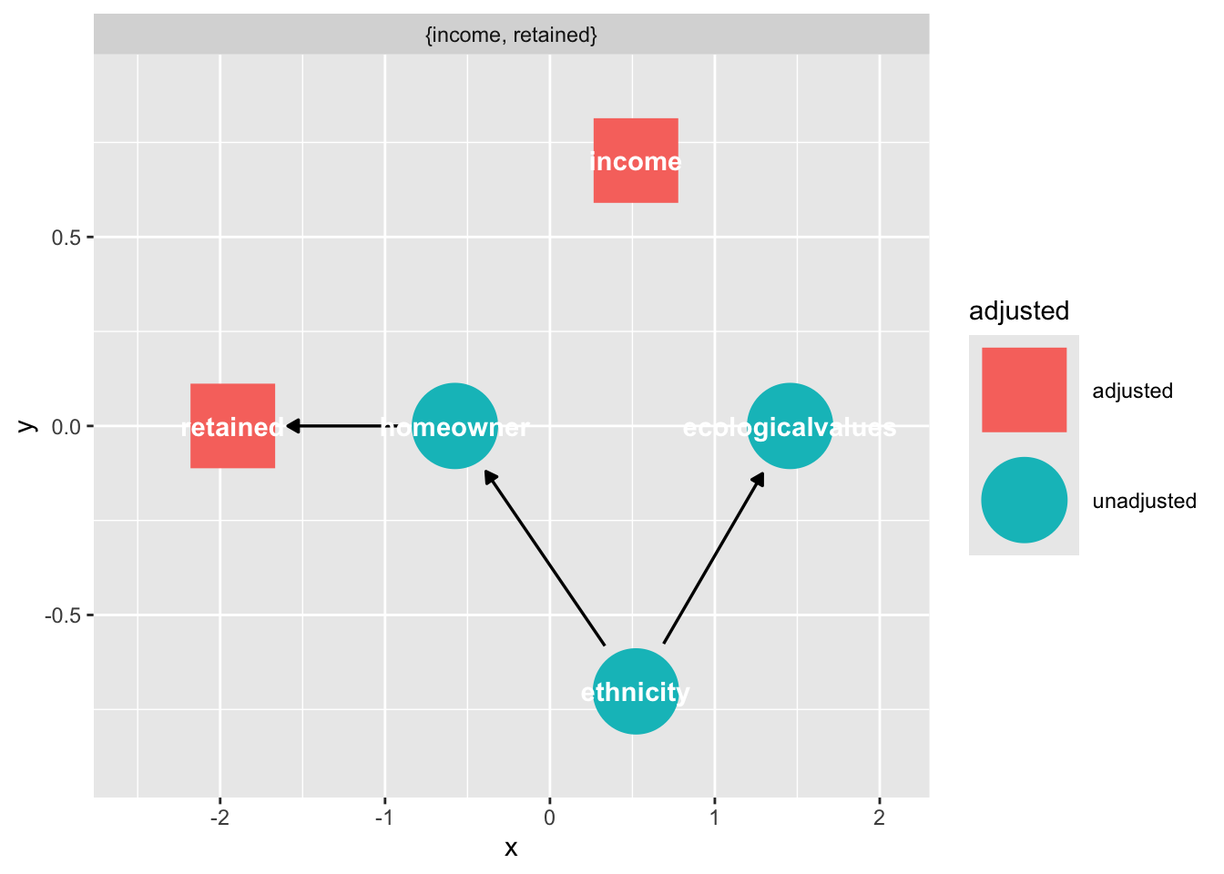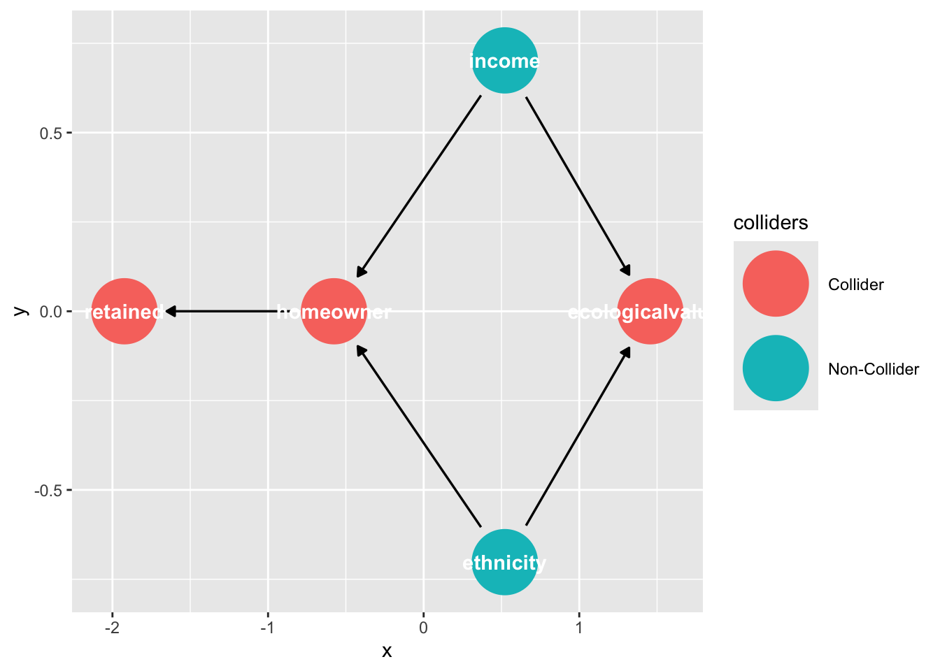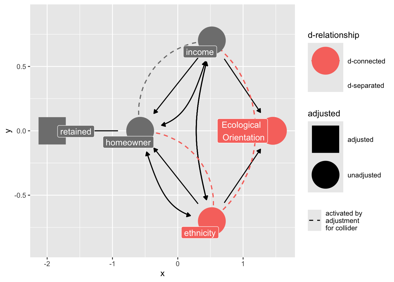 Notice that "retained" falls downstream from a collider, "home ownership"